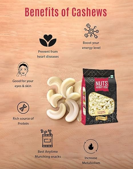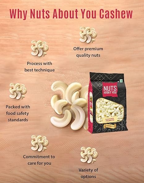 Nuts About You CASHEWS Premium, 500 g | 100% Natural | Premium | Crunchy | W320 grade | Kaju