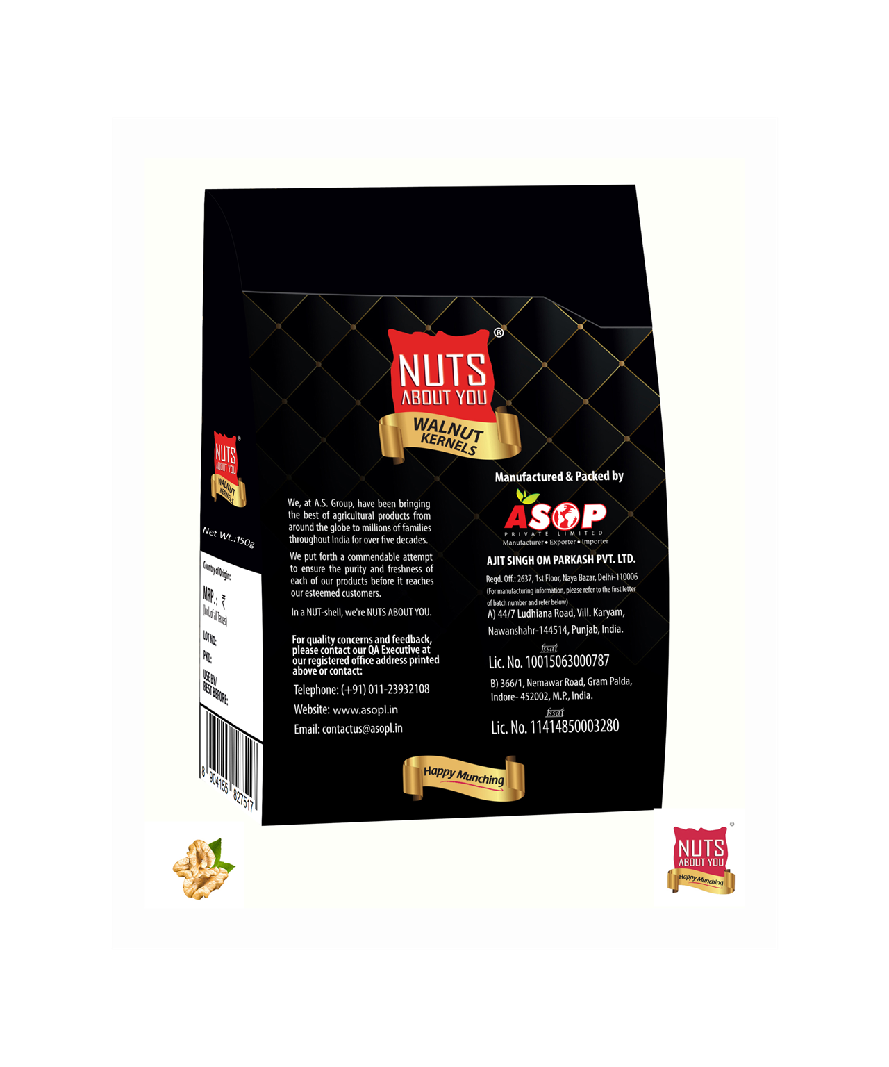 NUTS ABOUT YOU is synonymous with excellence in dry fruits and nuts, renowned for their exceptional taste and stringent quality standards. Our products undergo meticulous inspections and are packed in state-of-the-art facilities that adhere to rigorous hygiene and food safety regulations. Certified by the highest food safety authority, both our processing units hold FSSC 22000 ver. 5.1 certification by COTECNA (IN/2019/0046). Embrace “Happy Munching” with our diverse range of superfoods tailored for nutritious snacking.